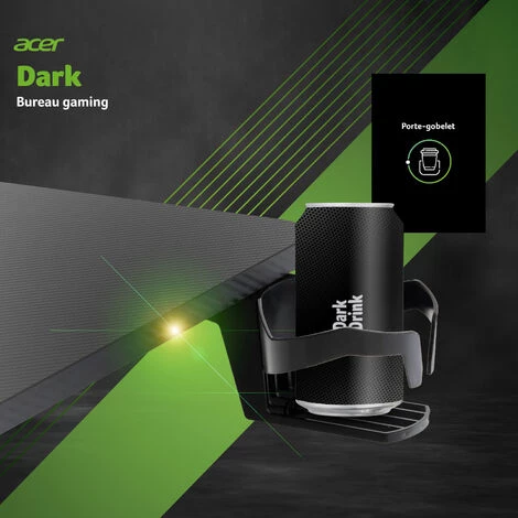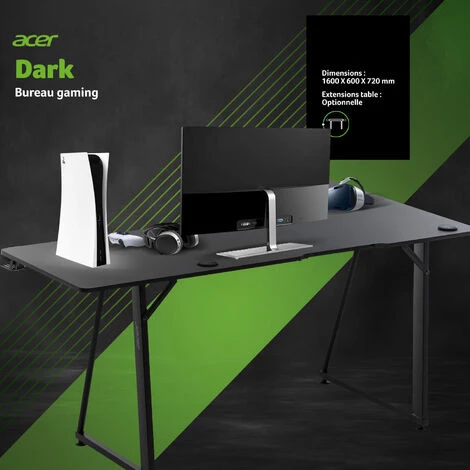 Le bureau gaming Acer Dark GD1000 présente un bel espace de travail de 160 par 60 cm et d’une hauteur de 72cm. Designé en L et équipé d’un porte casque et porte gobelet, le Acer Dark a vraiment été pensé pour vous apporter du confort et une fluidité dans vos mouvements. Sa surface en fibre de carbone lui donne un design très moderne et permet un entretien simple avec toujours une recherche de confort d’utilisation et de gain de performance. Sa structure en métal et ses 4 pieds assurent un maintien solide. Le bureau Gaming Dark GD1000 est un bureau livré en un seul carton à monter à réception et qui dispose d’une garantie constructeur de deux ans.