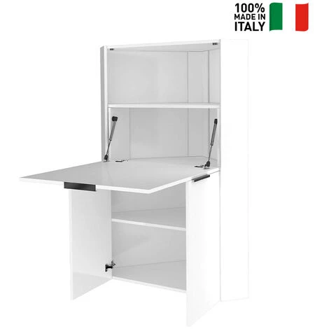 Lorsque l’espace disponible est limité, choisir un meuble peu encombrant peut s’avérer être un choix gagnant, surtout en cette période de télétravail. Pour aménager votre bureau à domicile, vous ne devrez faire qu’un simple geste : il vous suffit de faire basculer la porte centrale et, en quelques secondes, une solide étagère apparaîtra où vous pourrez placer votre ordinateur, vos documents et tout ce dont vous avez besoin pour travailler.