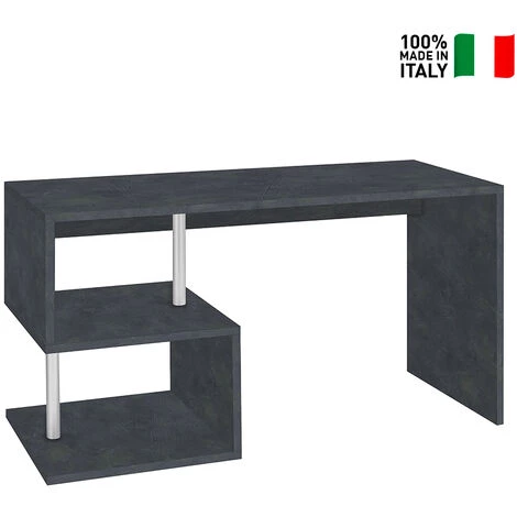 Le bureau est fabriqué en Italie en bois de qualité supérieure certifié FSC très robuste et résistant et une surface revêtue de résine en mélaminé. L’élément qui caractérise le plus ce bureau est sans aucun doute sa forme originale et sa couleur anthracite qui le rendent parfait pour les espaces de style contemporain où il donne encore plus d’élégance à l’environnement dans lequel il est placé. Avec sa taille de 140 x 60 cm, le bureau Esse 2 Report convient même aux environnements les plus petits et la surface de travail offre suffisamment d’espace pour placer tous les accessoires de bureau typiques à côté d’un ordinateur portable ou de bureau. En dessous, il propose deux confortables étagères ouvertes pour rassembler des objets et des documents de travail, ainsi que des livres pour les études, des objets de papeterie et des classeurs afin de les garder toujours à portée de main et ainsi avoir libre et dégagé le plateau principal.