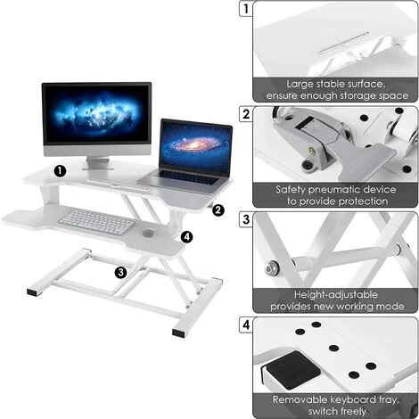 - Conception ergonomique : La table assis-debout peut vous aider à trouver la position assise la plus confortable et à réduire votre fatigue. Il y a aussi un réglage antidérapant sur le bas. Vous permet de vous ajuster et de vous adapter librement à vos besoins et vous aide à soulager les douleurs au cou. Grâce à la conception ergonomique, vous ne vous sentirez pas fatigué même si vous restez assis devant l’ordinateur.