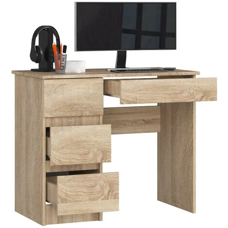 Bureau d’ordinateur 90 cm gauche A-7 Systeme sans poignée Chêne Sonoma / Chêne Sonoma 4 tiroirs 1