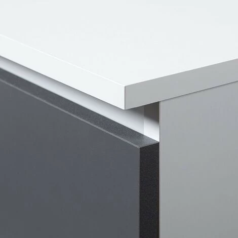 Grand bureau d’angle droit, bureau informatique, bureau d’ ordinateur 155 cm, B20, mat, Systeme sans poignée Blanc / Gris Graphite 4 étagères 3 tiroirs 1 portes1