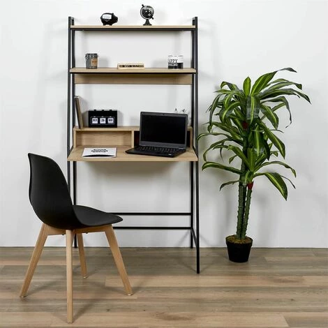 Original, pratique et tendance, ce modèle de bureau se fera discret dans votre intérieur tout en vous rendant service ! Vous disposerez de 2 étagères hautes et 2 niches de rangement sur le plateau, de quoi entreposer vos affaires pendant que vous travaillez !