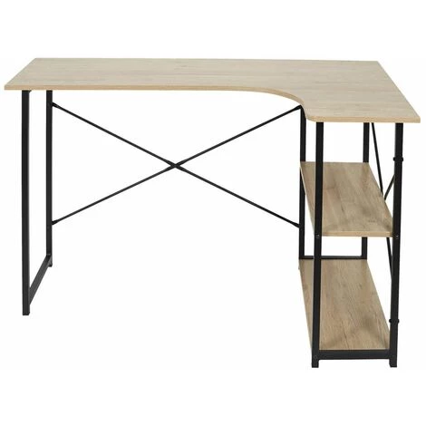 Bureau d’Angle Noir et Naturel avec 2 Tablettes Biwo.
