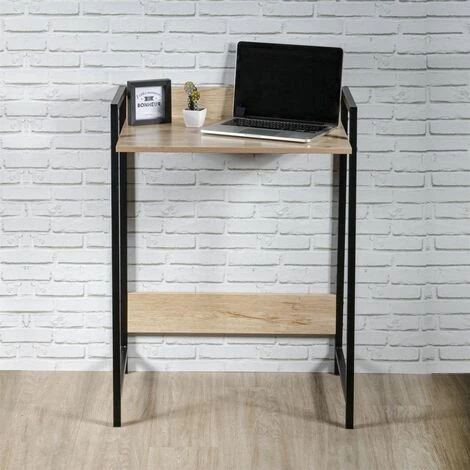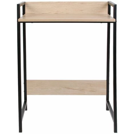 Piétement en acier coloris noir. Plateau en panneaux de particules, finition aspect bois.