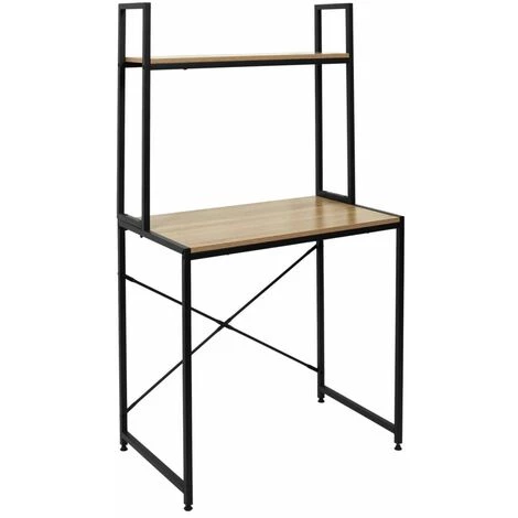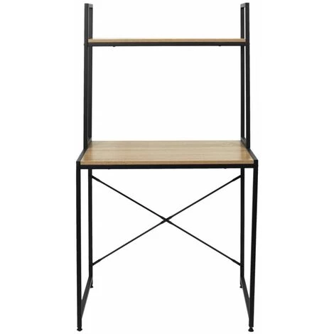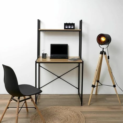 Bureau Etagère Métal Noir Plateaux Effet Bois de la gamme Stavi.