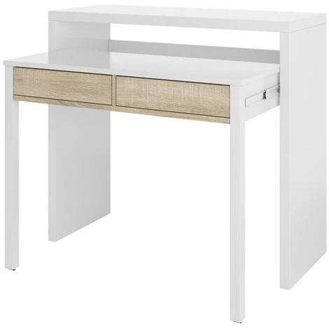 Bureau console extensible en chêne avec deux tiroirs blancs artik.