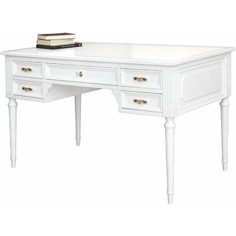 En plus de son extrême beauté, cette table bureau offre une fonctionnalité et un confort sans égal grâce à 5 tiroirs spacieux (dont un est équipé de fermeture à clef) et à une surface d’appui spacieuse.