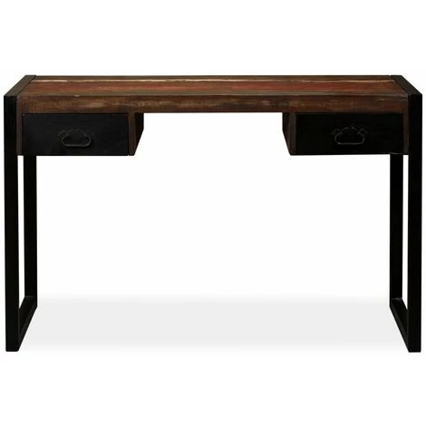 Ce bureau de style industriel dégage un charme vintage et apportera une touche intemporelle à votre maison. Il a deux tiroirs, qui offrent suffisamment d’espace pour ranger de petits objets tels que des clés, un cahier et d’autres bibelots. Le bureau peut également servir de buffet ou de console. La table d’ordinateur est faite de bois de récupération massif provenant de solives, de planchers et de poutres de soutien de vieux bâtiments en cours de démolition, et peut être composée de différents types de bois comme le pin, le teck, le hêtre, le chêne, le cèdre, le bois de manguier, l’acacia, etc. Cela signifie que le bois de récupération conserve les caractéristiques de ces différents types de bois. Le bois récupéré est déjà vieilli, patiné et séché, de sorte qu’il ne rétrécit pas, ne se plie pas et n’a pas besoin d’une finition. Les belles fibres de bois rendent chaque meuble unique et légèrement différent du suivant. Les signes d’usure et la structure fibreuse visible confèrent à chaque table de travail une histoire et un aspect unique. Chaque étape du processus est réalisée avec le plus grand soin, que ce soit le ponçage, la peinture ou le laquage. L’assemblage est facile. Remarque importante : les couleurs varient d’une pièce à l’autre, rendant chacune de nos tables d’étude unique ; la livraison est aléatoire.