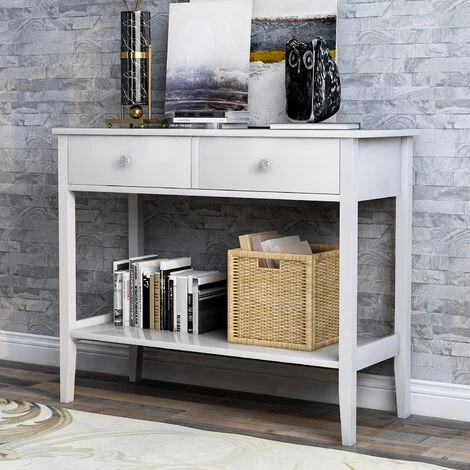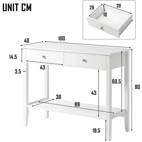 DIMENSIONS : 100(L) × 40(L) × 80(H) cm. Poids – 19,7 kg. Capacité de poids supérieure – 150 lb, capacité de poids de l’étagère – 50 lb, chaque tiroir – 11 lb. La table console dispose de 2 grands tiroirs fonctionnels qui offrent un espace de rangement.