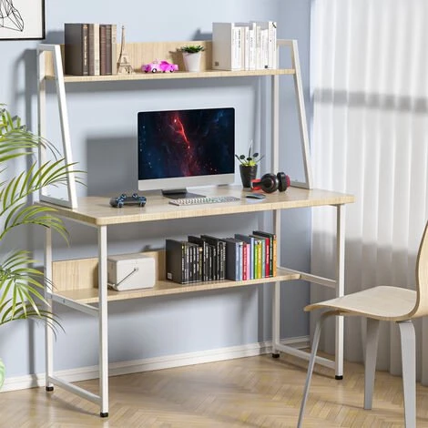 Grand espace de stockage : le bureau d’ordinateur peu encombrant a une étagère de rangement sur le dessus, qui peut accueillir de petites choses, telles que des livres, des documents, des décorations, des plantes, etc., offrant beaucoup d’espace pour une utilisation quotidienne à la maison ou au bureau pour rendre vos affaires propres et bien rangées