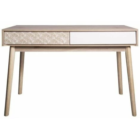Sofia collection bureau 2 tiroirs en panneaux de particules et mdf finition papier décor de différentes couleurs avec piétement en bois massif