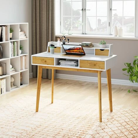 Moderne et élégant : la table d’ordinateur de couleur bambou naturel et blanc peut être parfaitement assortie à votre pièce, belle et pratique. Il peut parfaitement reproduire les différentes fonctions des bureaux d’ordinateur, des bureaux de maquillage et des bureaux d’étude !