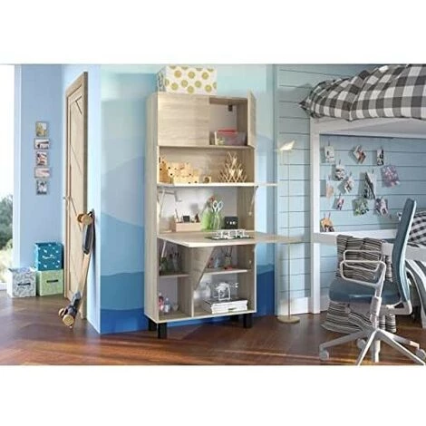 Grâce à cela, vous pourrez parfaitement aménager votre studio, bureau ou chambre jeunesse. HOMI se compose d’un espace de bureau dépliable pour le travail, ainsi que d’une étagère dépliante.