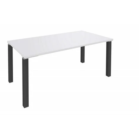 Bureau – Table EXPRIM Blanc Perle 4 Pieds Métalliques Carrés Coloris Carbone 120 cm