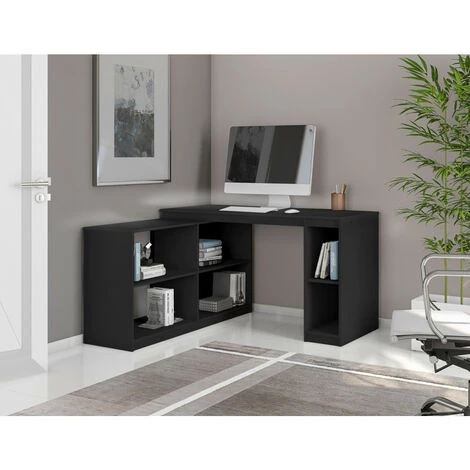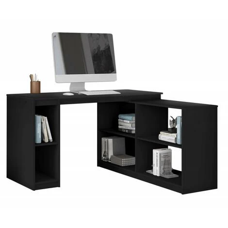 START UP Ensemble : Bureau d’angle avec un caisson 1 étagère + 1 Rayonnage 2 étagères. Coloris Noir