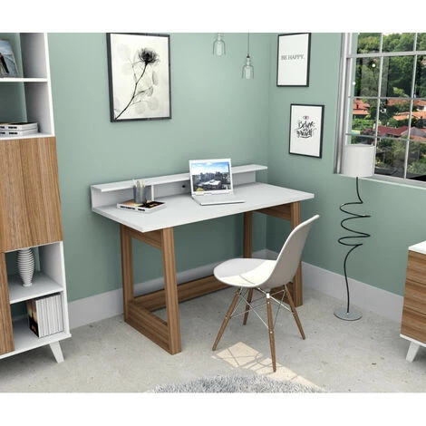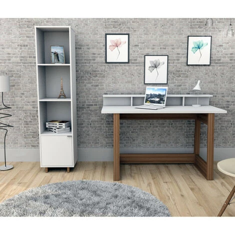 Bureau avec Surmeuble 3 Rangements Coloris Blanc et imitation Chêne.