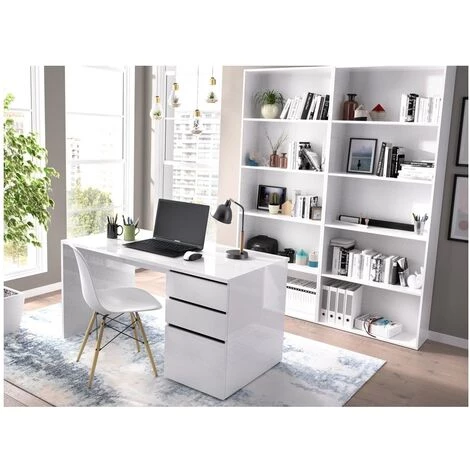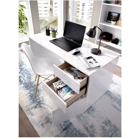 TABLE DE BUREAU AVEC DEUX TIROIRS ET UNE PORTE PARFAITE POUR AVOIR TOUT À LA MAINGrand bureau avec 2 tiroirs et une porte, parfait pour garder l’ordre et tout garder à portée de main, avec une surface de travail de 60 x 139 cm. Sa finition blanche s’associe à tous les styles de décoration.Matériel :: Mélamine haute résistance de 22/16 mm d’épaisseurCouleurs disponibles :: BlancDimensions :: 139 x 75 x 60 cmEmballage :: 1Dimensions de la caisse :: 143,10 x 62,10 x 9,70 cmPoids net :: 40 KgPoids brut :: 40 KgEtat :: Se sert démonté en format kit facile à monter.Inclus :: Toutes la visserie, pièces et instructions de montage.Important :: Entretien au chiffon doux et légèrement humide, ne pas utiliser de produits ammoniaqués, dissolvants ni abrasifs.