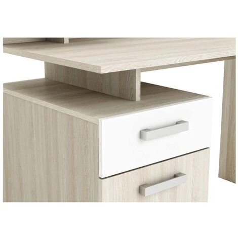 ORGANISEZ-VOUS EN TOUTE MODERNITÉGrâce à ses nombreux rangements, ce bureau moderne pourra vous accommoder, peu importe la pièce ou l’utilité.Ingénieux et pratique, ce bureau aux multiples compartiments séduira les amateurs d’organisation. Equipé de niches, d’un comptoir et de bandes élastiques pour placer des mémos, il offre un espace de rangement optimal. S’adapte facilement à votre intérieur : Avec ses couleurs de tons neutres, ce bureau s’adaptera facilement à tous vos mobiliers et style de décoration. Un bureau aux nombreux avantages : Ce bureau est connecté avec son presse-étoupe et son port USB. Sa tablette supérieure vous offre également une plus grande capacité de stockage. Un bureau riche de nombreux accessoires : Des élastiques pour accrocher des notes, post-it, photos ou documents importants Ce bureau Made in France accueille également 1 tiroir, 1 porte, 1 étagère superposée avec des espaces de rangement. 1 module 1 porte. 1 niche sous le tableau de bord. 1 étagère superposée avec de nombreux Rangements : 1 bloc avec 1 étagère : 33x22cm / 1 petite étagère fixe : 33x12cm / 1 grande étagère fixe : 86x12cm / 3 bandes élastiques pour accrocher des notes, etc. / 1 presse-étoupe / 1 port USB. Matériel :: Panneaux agglomérés de 15 mm – 18 mmCouleurs disponibles :: Blanc perle / ChêneDimensions :: 123 x 60 x 121,9 cmEmballage :: 1Dimensions de la caisse :: 130,5 x 62 x 12,2 cmPoids net :: 45,5 KgPoids brut :: 46,5 KgAccessoires :: 3 élastiques pour accrocher notes, croquis… / 1 passe-câbles / 1 port USB.Dimensions étagères:: 1 bloc avec 1 rayon : 33 x 22 cm / 1 petite tablette fixe : 33 x 12 cm / 1 grande tablette fixe : 86 x 12 cmDimensions tiroirs :: 37 x 8 x 36 cmEtat :: Livré en Kit, Facile à assembler.