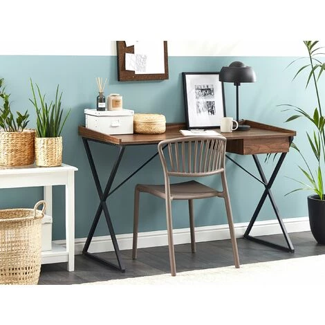 Mobilier de style scandinave. Grâce à son attrait rustique et à sa palette de couleurs universelle, ce joli bureau sera un superbe ajout à tout domicile. Il repose sur un cadre en acier robuste qui met en valeur son plateau en bois d’ingénierie imitant le bois dans un ton foncé. La pièce est équipée d’un petit tiroir à fermeture douce, pour que vous puissiez garder tous les documents nécessaires à portée de main.
