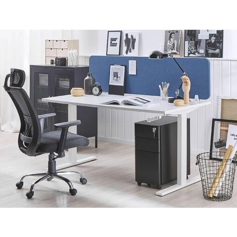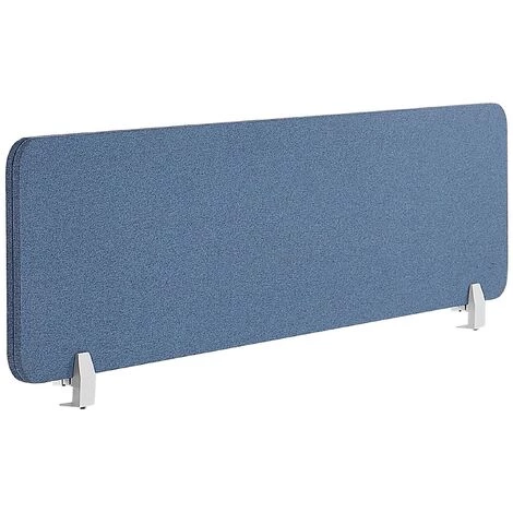 Séparateur acoustique et visuel bleu pour table et bureau . Vous souhaitez définir les limites dans votre espace de travail ? Opter pour un séparateur de bureau est la meilleure solution. Facile à installer, grâce au kit de fixation inclus, cette cloison amovible empêchera tous les regards indiscrets et saura vous assurer la protection contre le bruit et les distractions visuelles. Ce séparateur est fabriqué à partir d’un panneau en PET durable, recouvert de tissu polyester élégant pour ajouter une petite touche déco à tout intérieur. Étant une protection acoustique et phonique efficace, ce séparateur peut s’avérer très utile non seulement dans un bureau de type open space, mais aussi dans une chambre d’enfants, si jamais ils partagent une seule table pour leurs études.