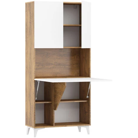 Bureau pliant MEGAN 1 bibliothèque chêne bordeaux / blanc