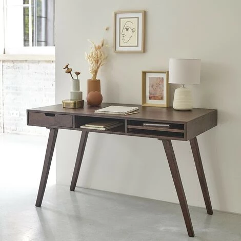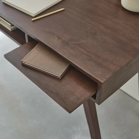 En finition en noyer, ce bureau en bois de manguier s’intĂ©grera parfaitement dans votre salon ou votre chambre.