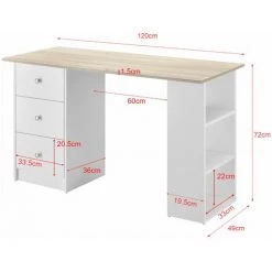 HELLOSHOP26 Bureau Table Poste De Travail Informatique Avec 3 Tiroirs 120 Cm Blanc Et Bois – Blanc