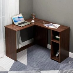 HOMYLIN Bureau Informatique Avec 4 Compartiments De Rangement En MDF Bureau D’angle Beige L 90cm