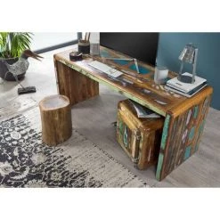 MASSIVMOEBEL24.DE Bureau 170×65 Bois De Récupération Laqué Multicolore FREEZY #40 – Multicolore