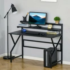 MEUBLETMOI Bureau L140 Cm En Bois D’acacia Cendré Avec Piètement En Métal – KUBI – Bois