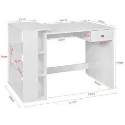 SoBuy FWT35-W Table Bureau Informatique Plan De Travail Avec 3 étagères Et 1 Tiroir – Blanc