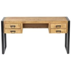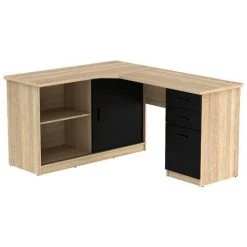 VENTE-UNIQUE.COM Bureau D’angle NORWY – 2 Portes & 2 Tiroirs – Chêne Et Noir – Noir, Naturel Clair