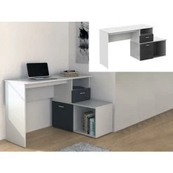 VENTE-UNIQUE.COM Bureau D’angle NORWY – 2 Portes & 2 Tiroirs – Blanc & Gris – Gris Anthracite, Blanc