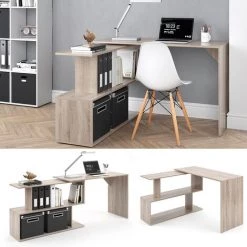 Bureau D’Angle Réversible 4 Cases L111,9 Cm – Corner – Calicosy – Chene Shannon – Chene Shannon