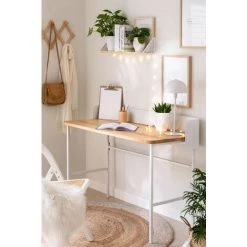Bureau En Bois Et Métal Coloris Naturel – Longueur 120 X Profondeur 60 X Hauteur 75 Cm – PEGANE –