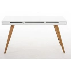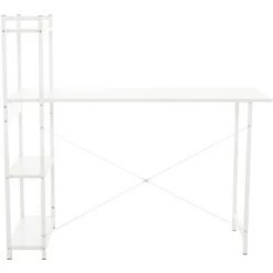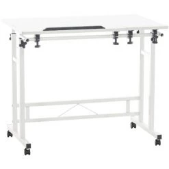 CLP Bureau à Roulettes Telford Avec Plateau En Bois 2 Tablettes Ajustables Et Pieds En Métal Blanc