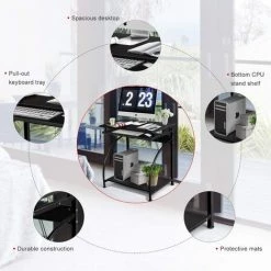 COSTWAY Bureau Imformatique Table Pour Ordinateur Avec Clavier Coulissant 70 X 47 X 75 CM Noir