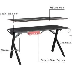 Devoko Bureau Gaiming 140 Cm Bureau Gamer Informatique Table Avec Porte-Boisson Et Porte-Casque Noir