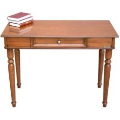 ARTEFERRETTO Bureau 1 Tiroir Et Plateau En Simili Cuir – Finition Merisier Et Plateau Vert