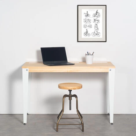 Table de bureau Lunds en style scandinave avec 3 compartiments. Longueur 120cm x Profondeur 60cm x hauteur de 74cm. Métal Blanc, bois finition naturelle. Conçue et fabriqué en Espagne par BOX FURNITURE. Parfaite pour créer une ambiance nordique. Plateau en bois massif de pin fini avec des huiles naturels, avec haute résistance à l’usage et certification écologique. Touchée très agréable à bois naturel. Très solide avec pieds métal en 2 mm. d’épaisseur coupé à laser. Finition avec peinture en poudre sechée au four à l’haute température.Chaque pièce est unique et legères variations de tonalité peuvent apparaître par rapport à la photo. On peut avoir des petites variations en mesures à cause de changements des matières premières (+-1 cm.). Meuble recommandé pour intérieur. Envoyé démonté. Livré avec notice de montage, vis et tous les éléments pour l’assemblage. Conseillé d’utilisser un tournevis éléctrique.