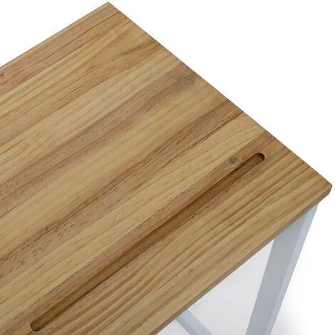 Table auxiliaire pour travailer avec la tablette/portable au canapé. ECO en style industriel. Pieds couleur Blanc. Longueur 70cm x Profondeur 36cm x hauteur de 63cm. Conçue et fabriqué en Espagne par BOX FURNITURE.Plateau en bois massif de pin de 18mm fini aux huiles naturels, avec haute résistance à l’usage et certification écologique. Finition vieillie.Pieds en tube d’acier. Finition de peinture en poudre séchée au four à l’haute temperature. Haute résistance.Chaque pièce est unique et legères variations de tonalité peuvent apparaître par rapport à la photo. Meuble recommandé pour intérieur. Envoyé démonté. Livré avec notice de montage, vis et tous les éléments pour l’assemblage. Vis autoperceuses pour une plus facile montage. Conseillé d’utilisser un tournevis éléctrique.