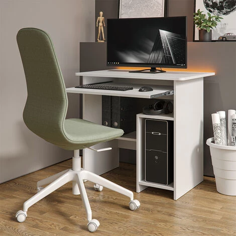 - Pratique, la tablette coulissante pour clavier de ce bureau informatique vous garantit ordre et espace sur le plan de travail, sachant qu’une multitude de solutions de rangement s’offre également à vous pour vos documents.