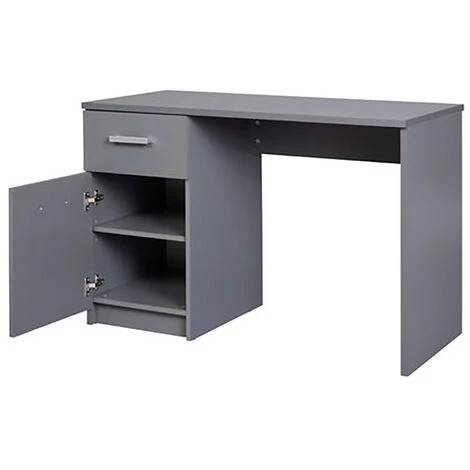 Fabriqué en panneaux de particules surface mélaminée couleur gris graphite, ce bureau offre 1 porte avec 2 niches et 1 tiroir sur rails coulissants pour ranger votre matériel bureautique ou autres objets divers. Livré en kit. Dimensions : Longueur 115 x hauteur 76 x Profondeur 55 cmPoids : 35,5 kgMatière : panneaux de particules surface mélaminéeCouleur : gris graphite