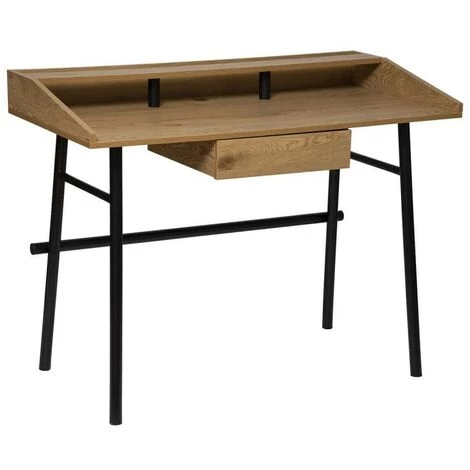 Adoptez un bureau petit et fonctionnel avec le bureau Josan 1 tiroir de la marque Atmosphera. En fibres de bois effet chêne et métal noir, ce bureau apportera beaucoup de style à la pièce. Il dispose d’un tiroir monté sur coulisses pour y ranger toutes vous fournitures. Le plateau est percé afin de pouvoir passer les câbles en toute discrétion. A monter soi même. Dimensions : L. 110 x l. 55 x H. 85 cm. Poids : 15 kg. Matière : Fibres de bois MDF et fer. Marque : Atmosphera.