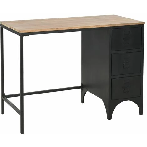 Le bureau se compose d’un cadre en acier robuste et d’un dessus en bois de sapin massif. Il est extrêmement robuste et durable. Le bureau dispose de 3 tiroirs qui offrent suffisamment d’espace pour garder vos dossiers, papiers, documents et autres fournitures de bureau à portée de main et bien rangés. La conception du cadre en acier lui donne un aspect industriel. Le bureau est facile à assembler.