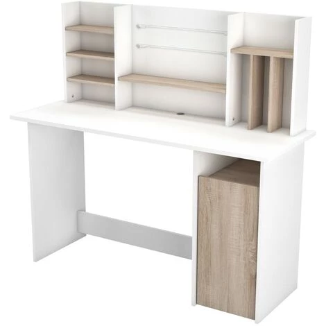 Avec ses lignes épurées, le Bureau avec Surmeuble et Rangements L134,8 cm – Ambre propose un sur-meuble, des élastiques pour y glisser des mémos ou des photos, des ranges dossiers/documents pour organiser son travail de manière optimale. N’attendez plus pour choisir le bureau « Ambre ».