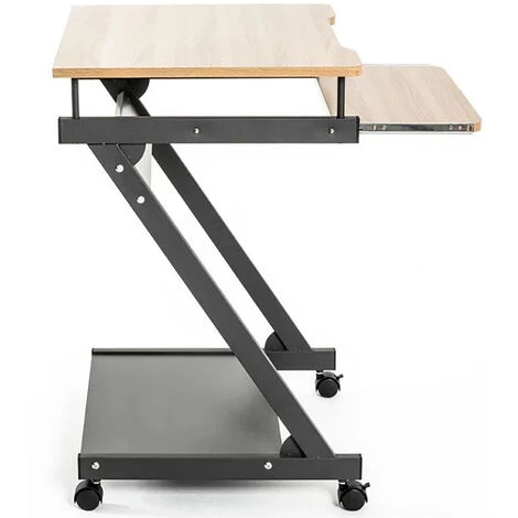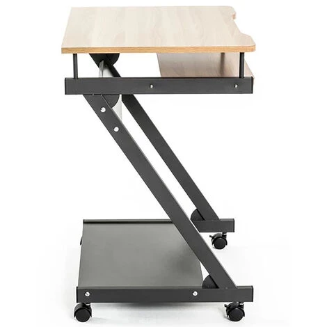Bureau / Chariot Ordinateur En Métal Anthracite Et Bois Naturel – Longueur 60 X Hauteur 76 X Profondeur 49 Cm -PEGANE-