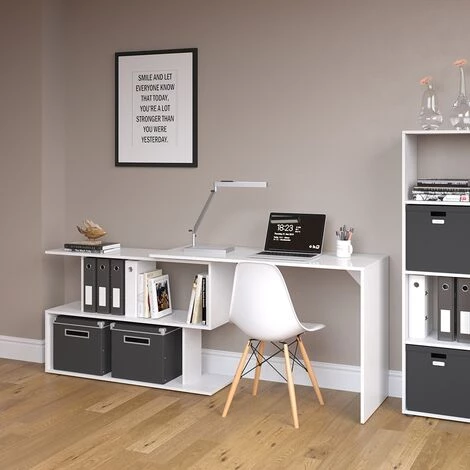- Créez votre bureau comme vous le souhaitez. Avec différentes possibilités de mise en place, ce bureau s’adapte parfaitement à toutes les pièces.