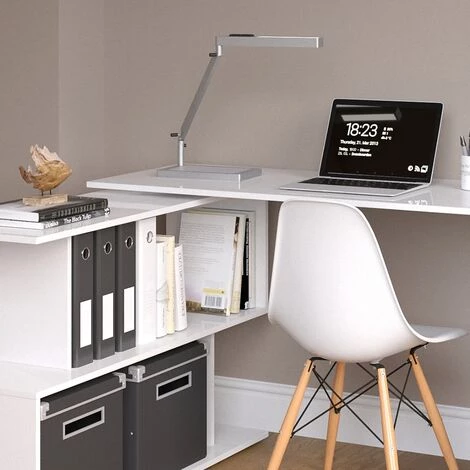 Un super bureau avec un grand espace de rangement, une mise en place flexible et un design plein de style. Le bureau en angle Levia est sans aucun doute le choix idéal pour votre espace de travail.